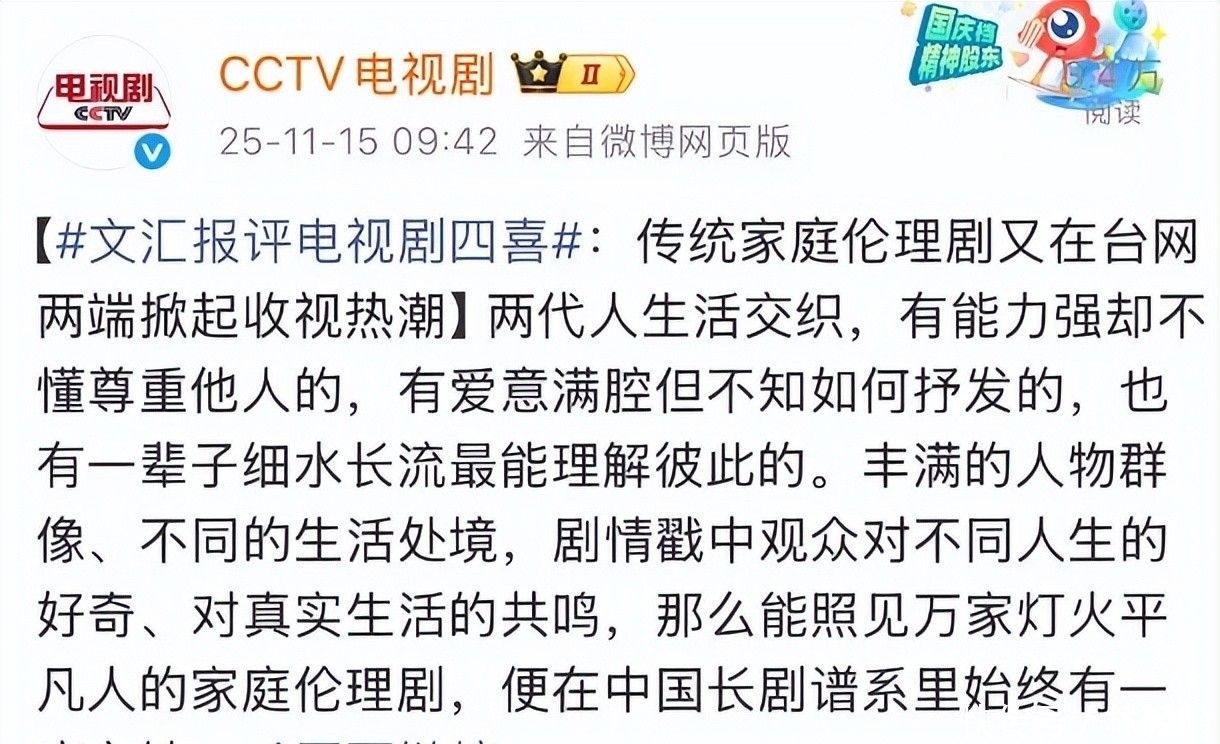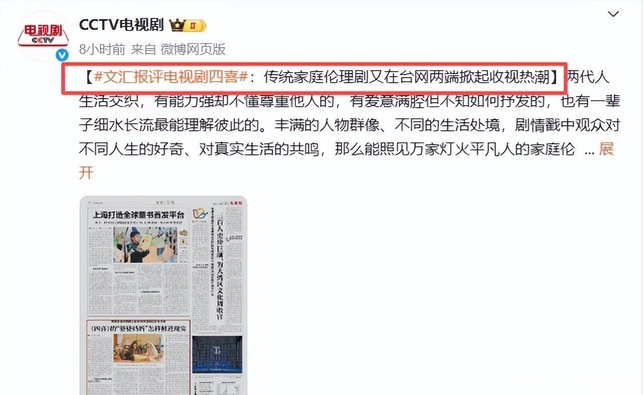 5. 可谁也没想到,《文汇报》一篇剧评突然刷爆社交平台,文中写道:“能映照千家万户普通人生活的家庭伦理剧,在中国长篇剧集的发展脉络中始终占据不可替代的位置。”